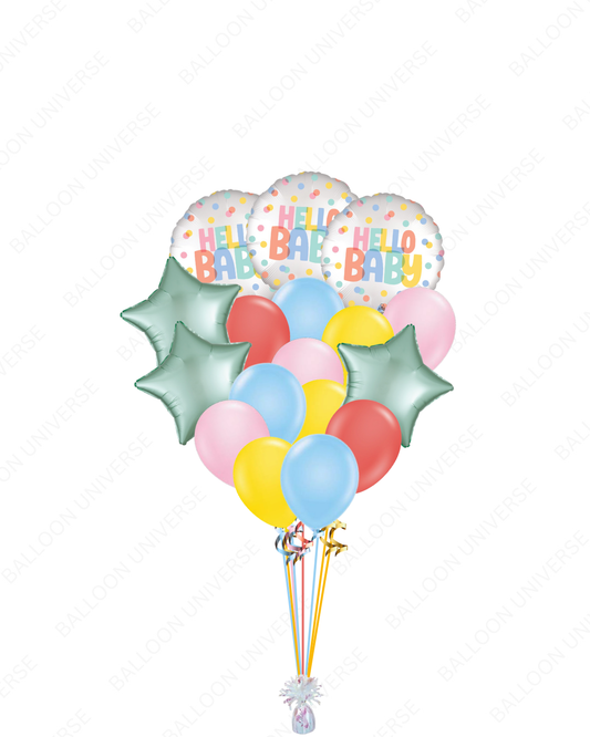 Hello World Baby Shower Blue Balloon Bouquet for Boys