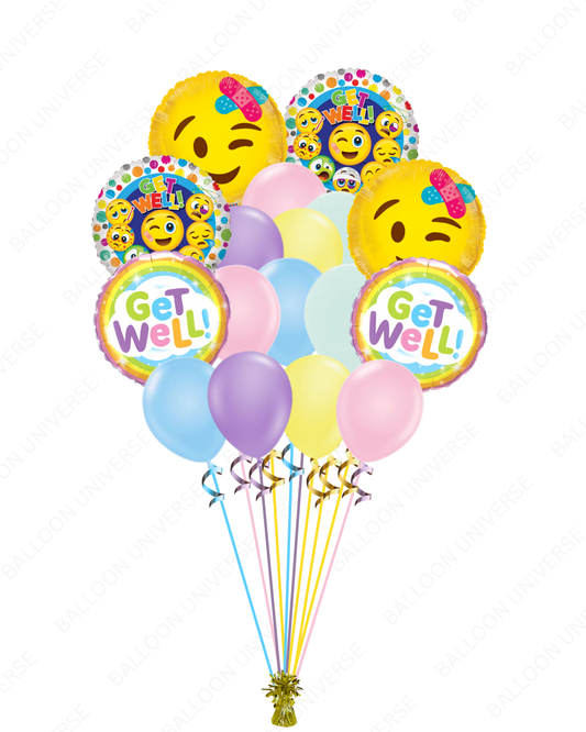 Get Well & Emoji Balloons Arrangement with Pastel Latex