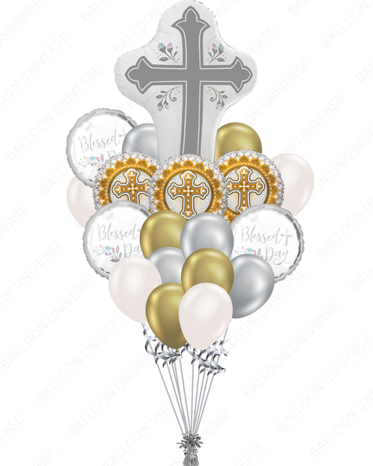 Blessed Day Cross Balloon Bouquet for First Communion/Religious Celebrations