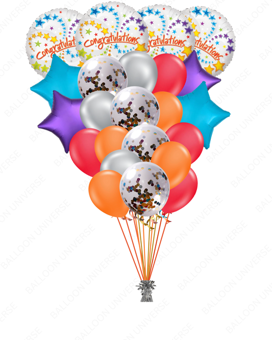 Congratulations Rainbow Confetti & Star Mylar Balloon Bouquet