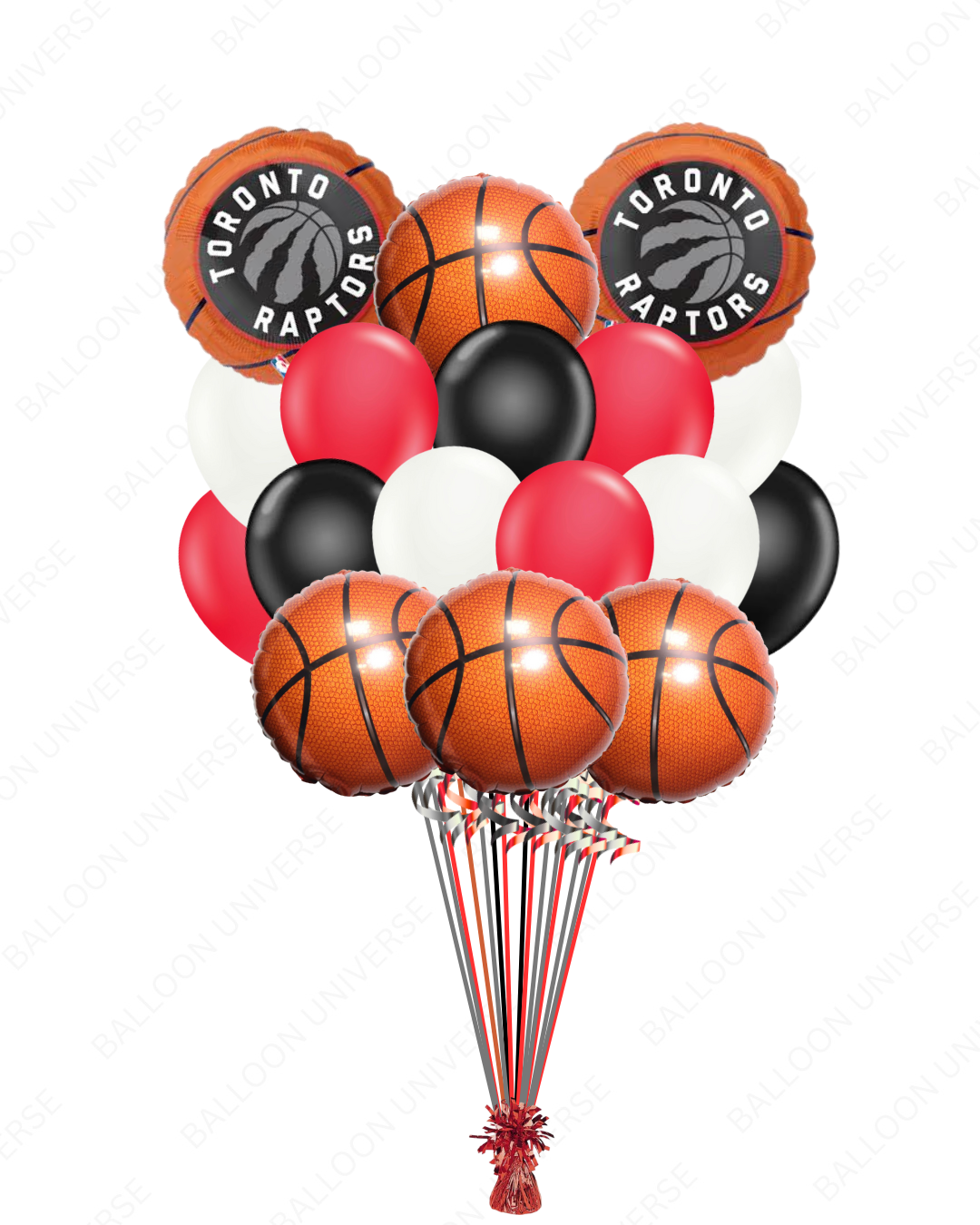This comes with the Toronto Raptors balloons, basketball mylar, and a mix of red, black and white latex balloons. This arrangement shows off true team spirit. Each balloon comes helium-inflated with ribbon for easy display. This makes it perfect for game day watch events or sports-themed celebrations. Available in three size variants.