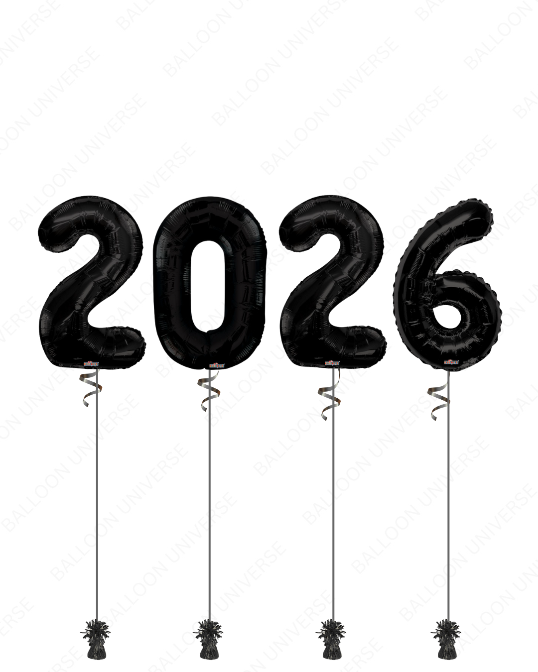 This 2026 Number Mylar Balloon Set adds a festive touch to any New Year celebration. Each helium-filled number comes with its own individual weight for easy setup, making it perfect for New Year's parties, events, or home décor. Available in Gold, Silver, and Black. These balloons are ideal for photo backdrops, countdown celebrations.