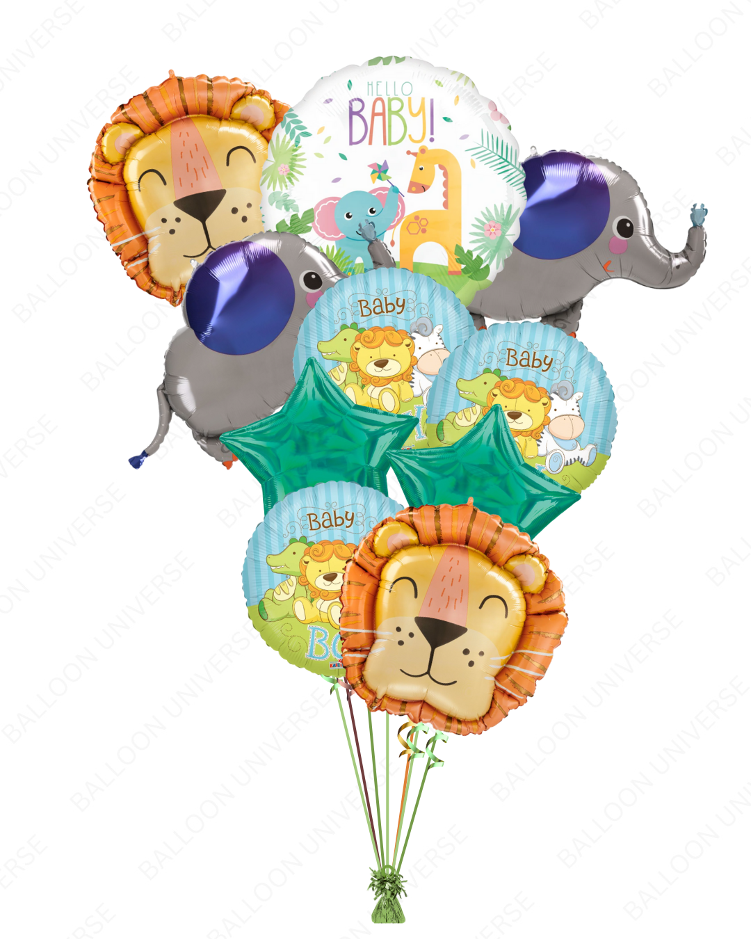 Adorable Jungle Theme Hello Baby Balloon Bouquet (Helium Filled)