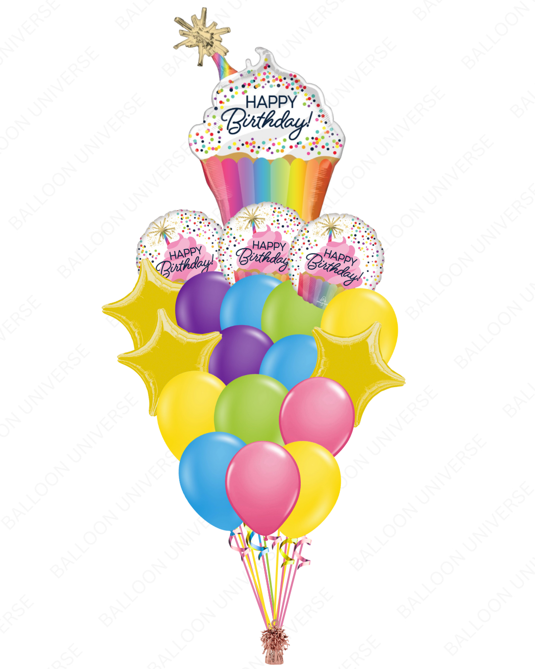 Birthday Cupcake Balloon Bouquet - Mylar & Latex