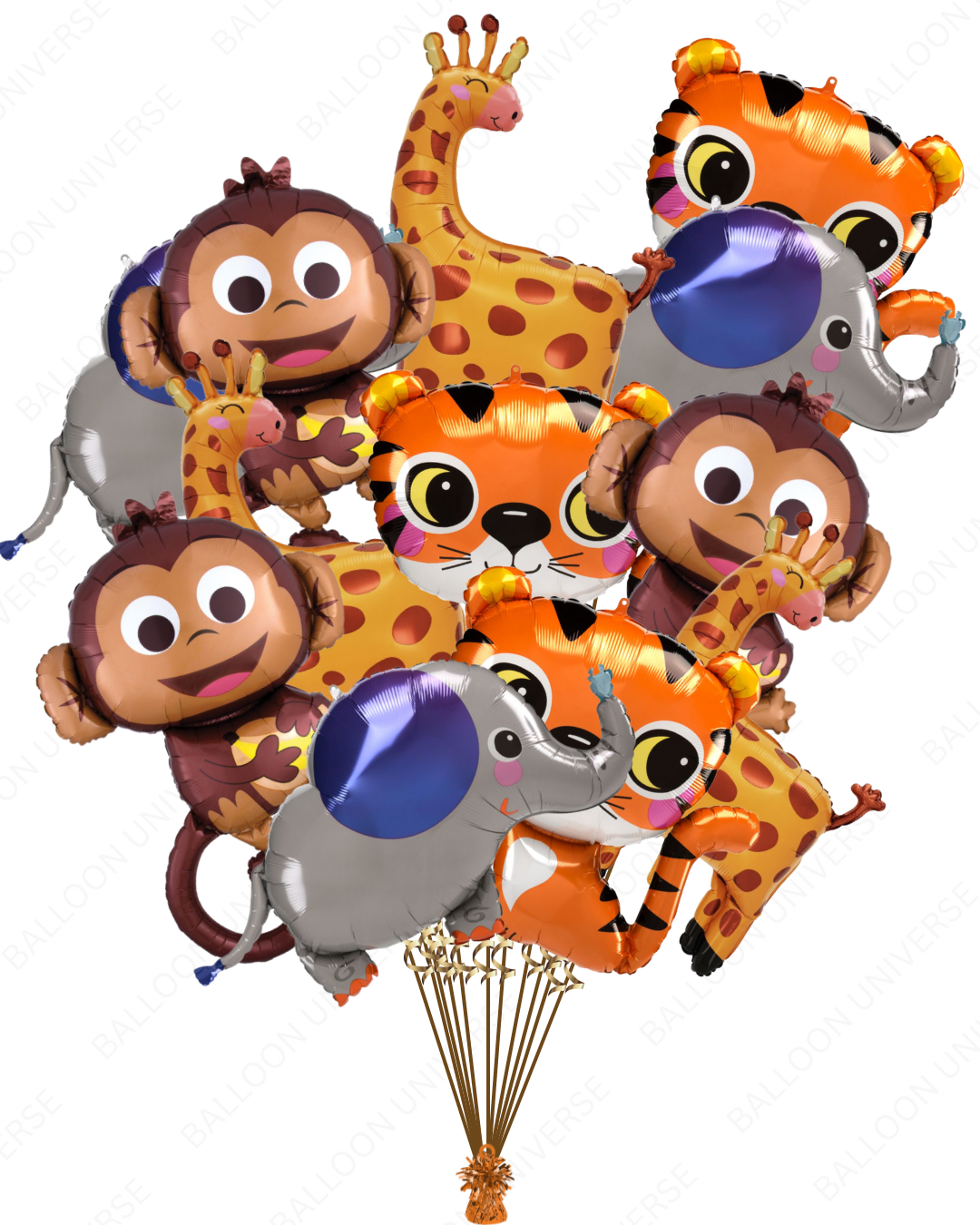Helium Filled Animal Balloon Bunch - Tiger, Elephant..