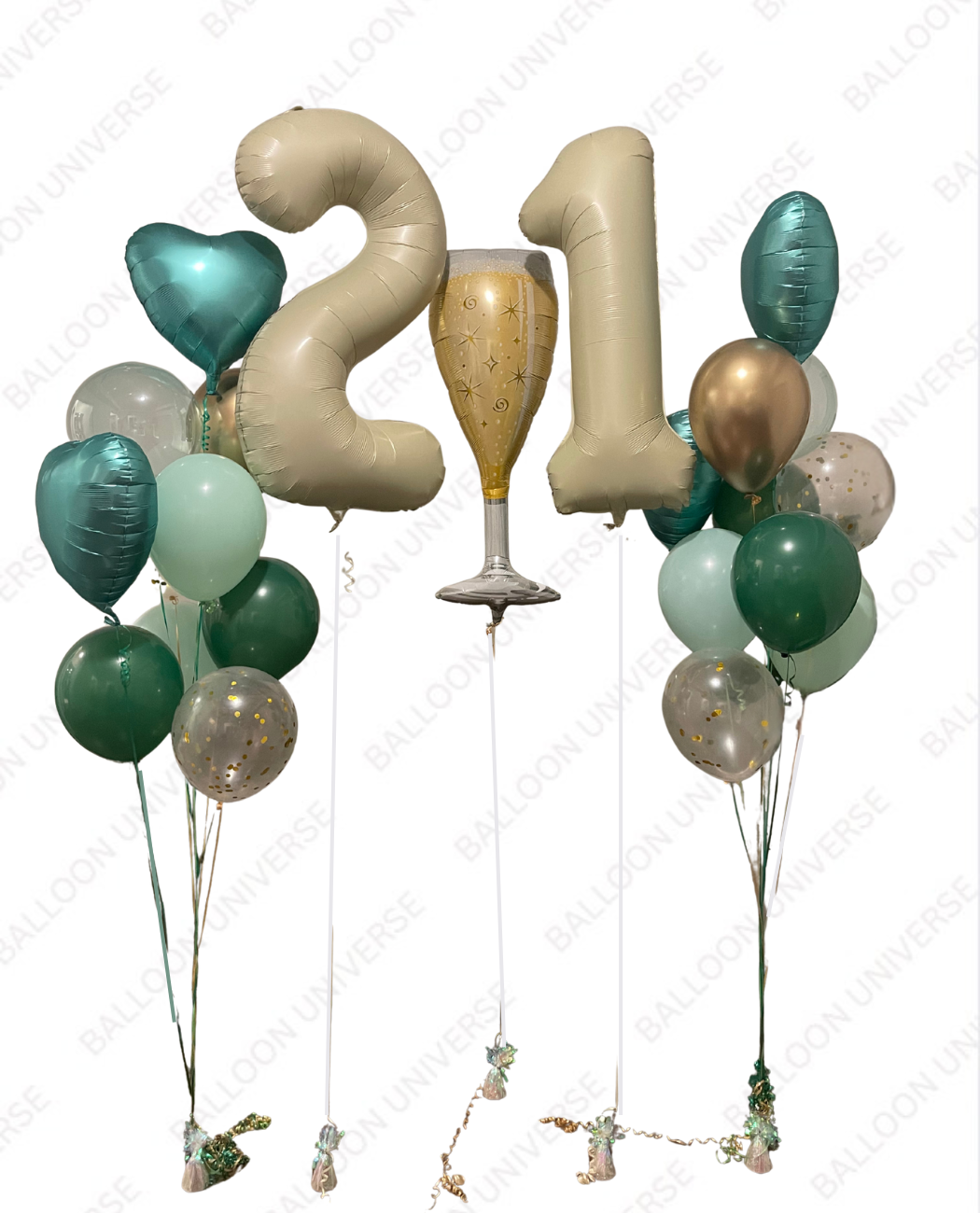 This Champagne Green & Beige Number Set brings an elegant sparkle to your celebration! Designed with a mix of customizable beige Mylar number balloons, a bubbly wine glass Mylar, and green and gold latex accents, this set adds a luxurious and festive touch to any event. Whether it’s a birthday, anniversary, or milestone party, the champagne-inspired colors and shimmering confetti balloons create a classy atmosphere that feels both fun and sophisticated. Customize your numbers and let your décor shine in true celebration style!