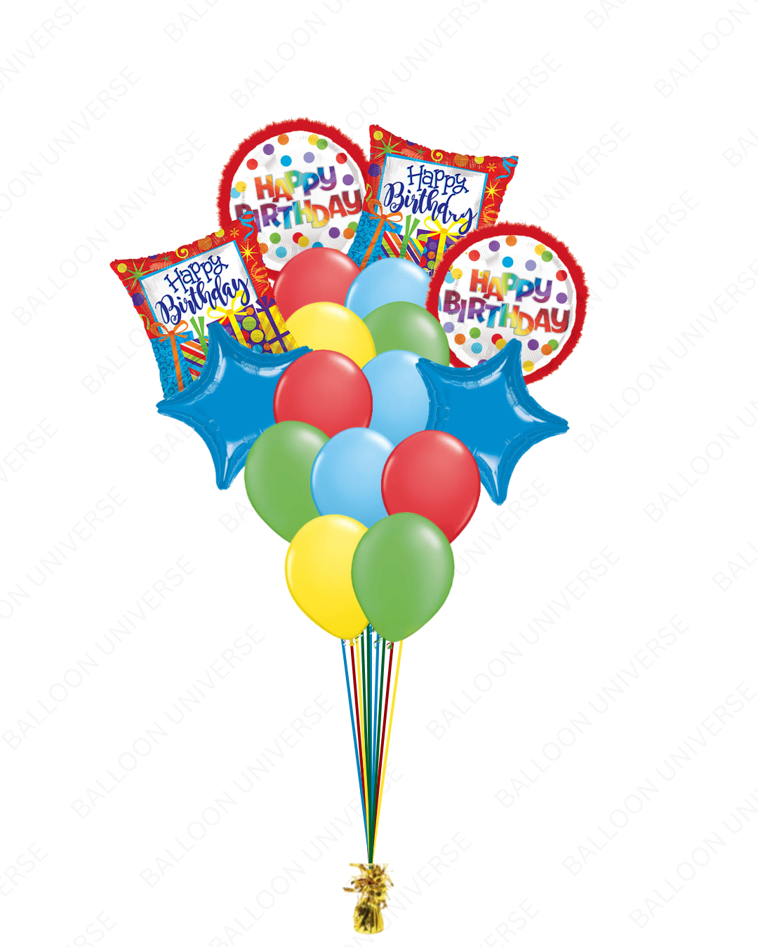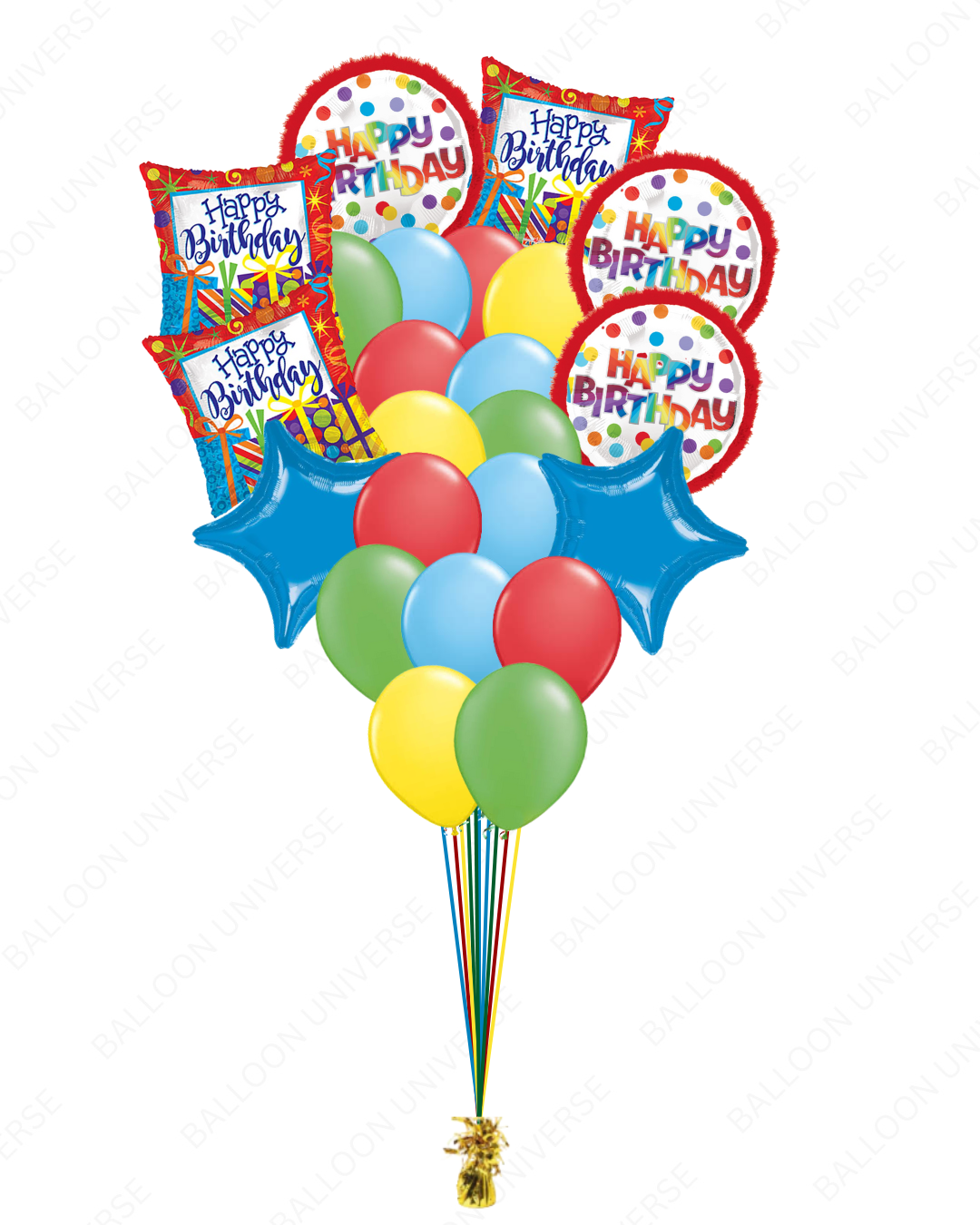 Send big birthday smiles with this bright and cheerful Happy Birthday Balloon bunch. This bouquet is Perfect for surprising someone special or adding a pop of color to their party. With its lively mix of colors, it's a joyful way to make their day unforgettable. Available in three size variants. All balloons are filled with helium.