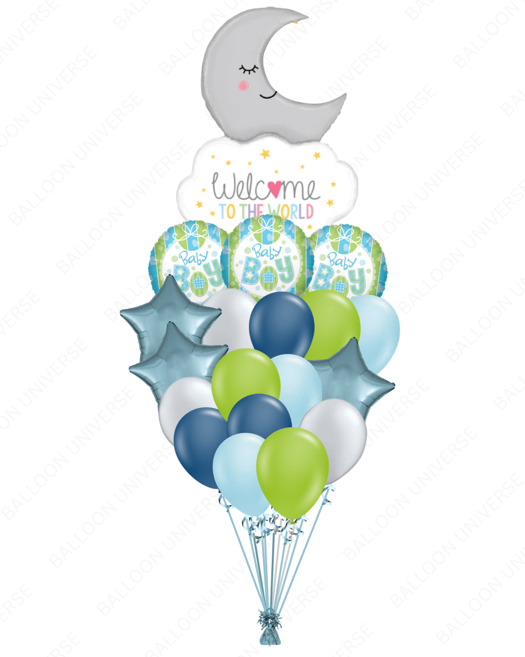 Welcome to the World Baby Boy Moon Balloon Bouquet