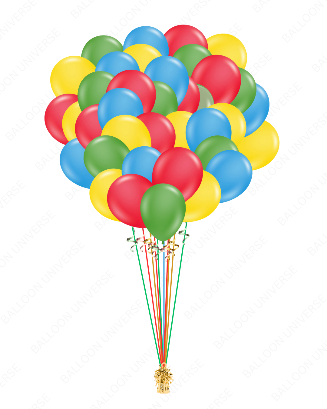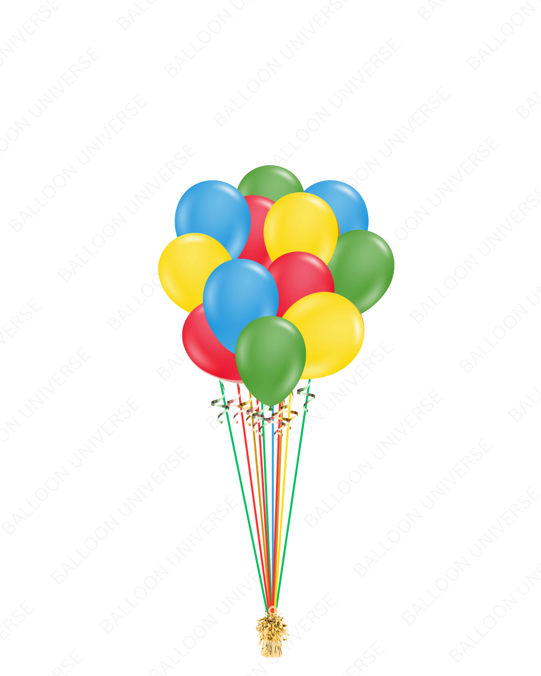 This beautiful multi-color balloon set includes red, green, yellow & blue Latex balloons. This bouquet is perfect for birthday, anniversaries, weddings, graduation and other festive celebrations. All balloons are helium filled. Available in three size variants.