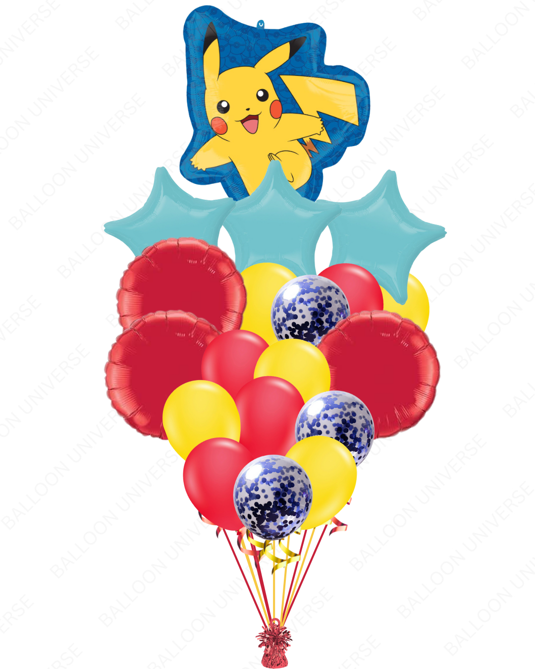 This Pokémon Pikachu Balloon Set is a fun and vibrant decoration choice for anyone who loves the world of Pokémon. Featuring bright colors and everyone’s favorite character, Pikachu. The combination of Mylar and latex balloons in red, yellow, and blue creates a cheerful atmosphere. This Pikachu Balloon Set is perfect for birthday parties, kids’ events, or surprise celebrations.