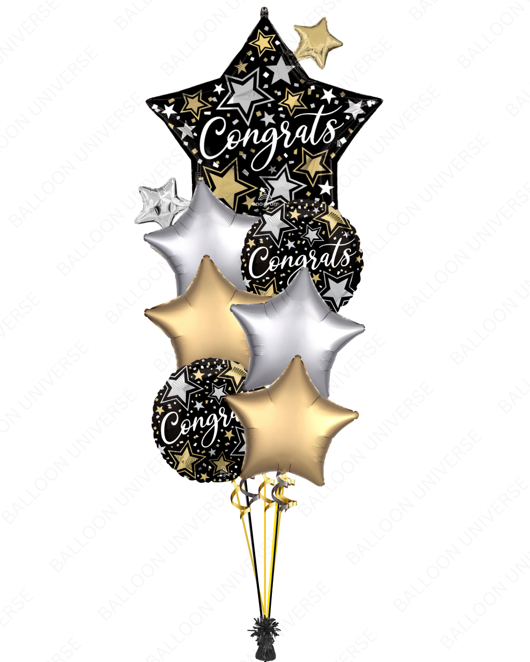 SuperShape Congrats Star Balloon Bouquet in Black, Silver & Gold