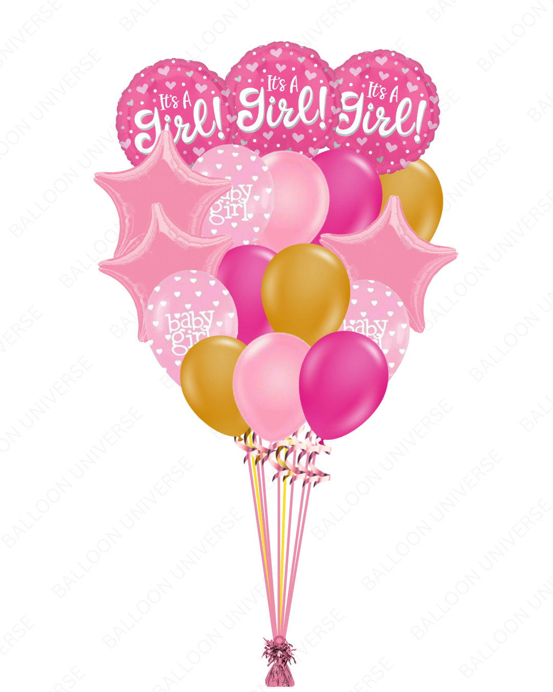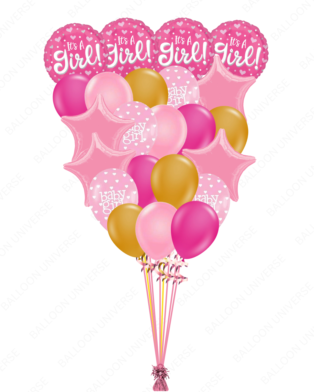 15x 11” Latex In Baby Girl, Hot pink, Light Pink & Gold